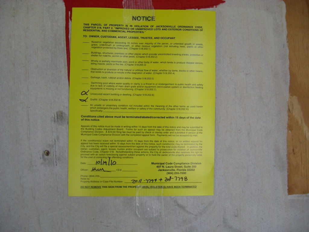 Have the owner show up at the hearing and state it is artwork that doesn't violate the cited ordinance, that the owner had installed. Graffiti has a definition within the statute, and this isn't it. As usual, nothing has changed at COJ Code Enforcement.