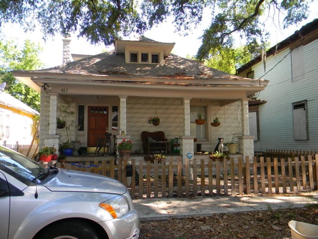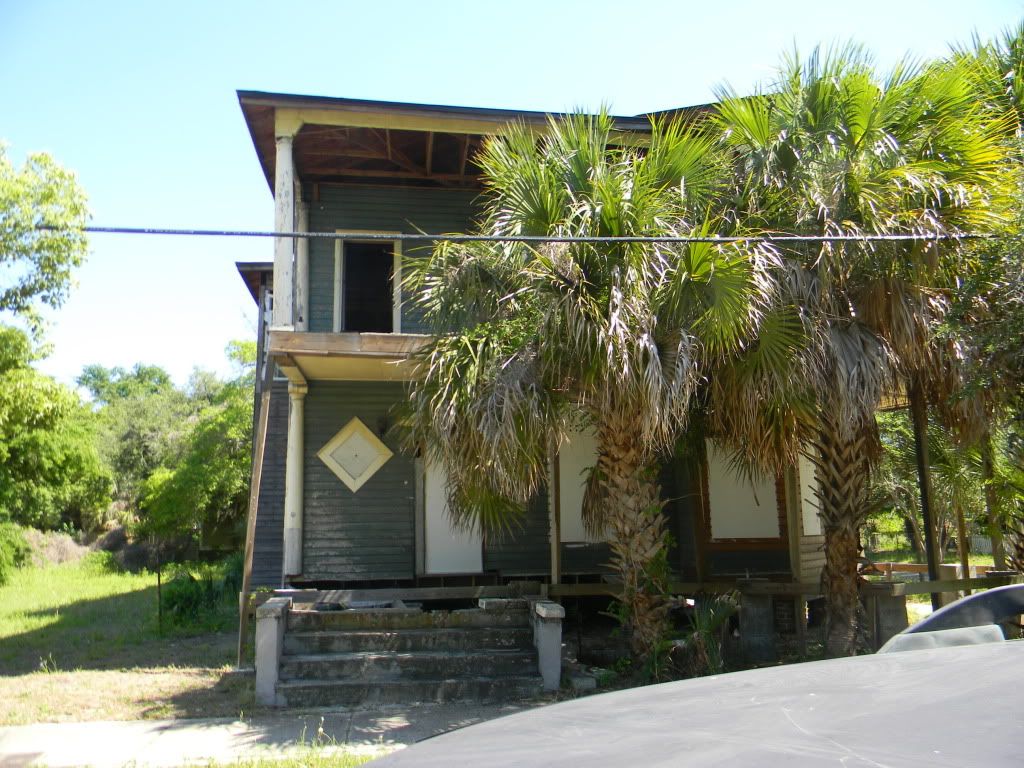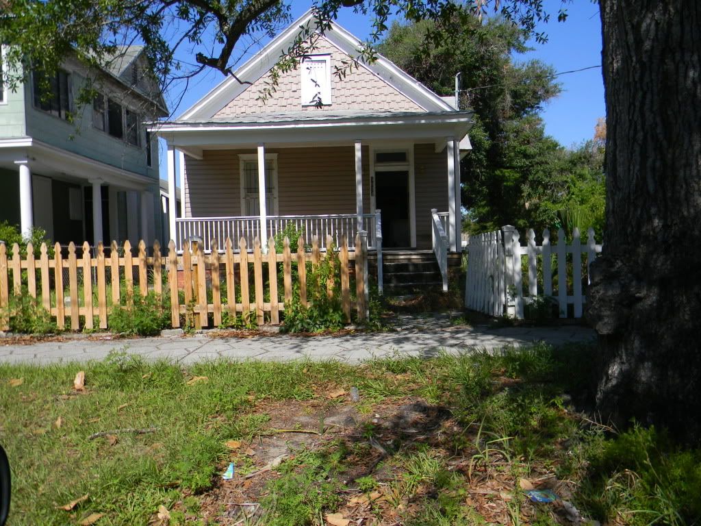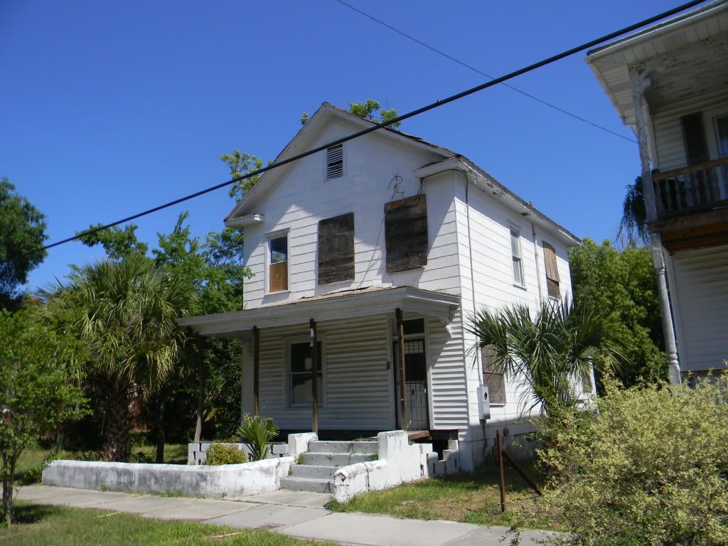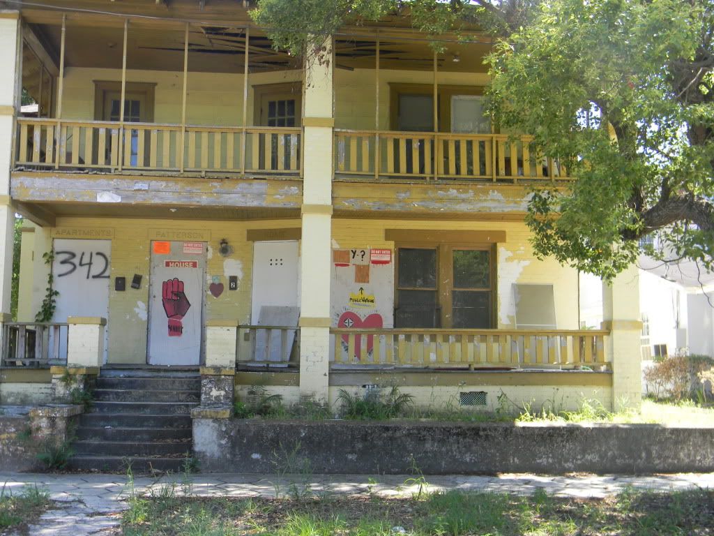 This is one of my favorites.  It is a cute yellow house, boarded up, adorable.