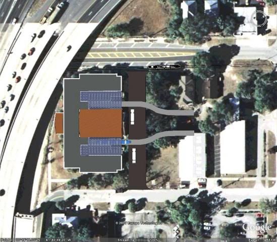 in addition to two floors of shopping and a theater. The original plan called for the Skyway to cross the Freeway at this point on Roselle St. - Even with the Annie Center there is no reason why a pedestrian bridge or underpass couldn't be fit in from Annie west.