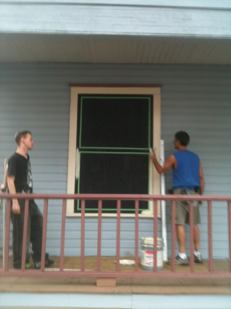 As part of the anti-blight component to mothballing, the JHPC requests that the boards, painted black, also include a "faux" sash, and we tackled this task today.