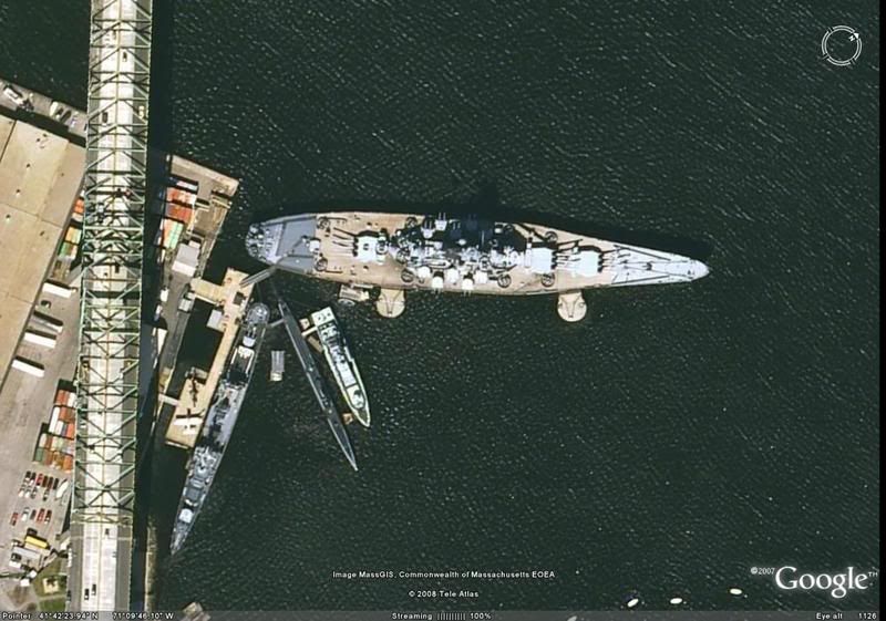 The location would be just about the same as Battleship Cove (home of the USS Massachusetts) in Fall River, MA, near I-195.
