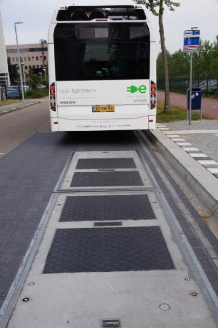 I'd love to see this appear downtown, a technology that would literally rocket our bus system ahead of most of the nation. These total electric buses would be great replacements for the downtown PCT Trolley's. They use inductive charging, when they stop at certain stops the batteries are charged, there is no physical connection between the bus and the chargers buried in the pavement. Totally green? Think solar.
