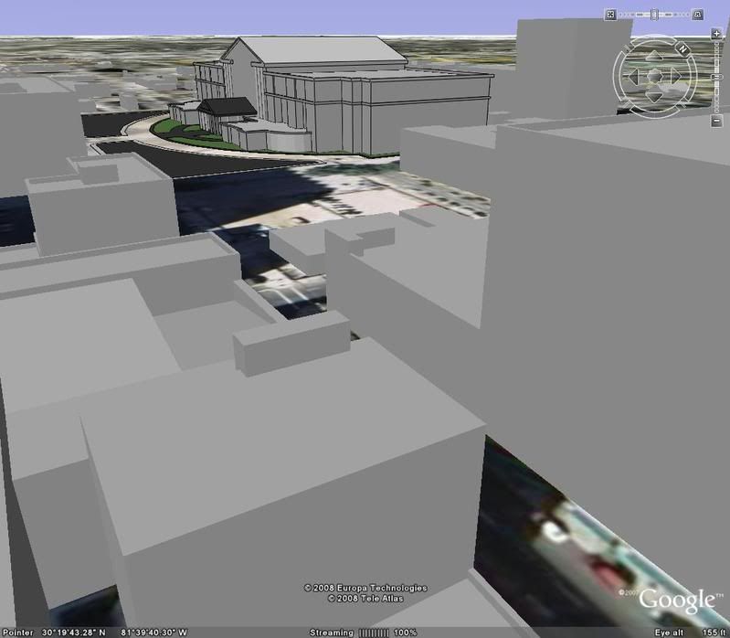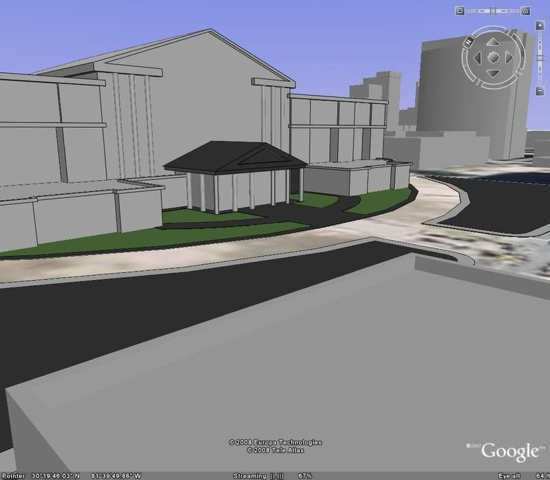 I had no idea of the total height of the proposed building.  Before it was all said and done I ended up with what appears to be a well proportioned model based on the renderings that towers 148' above sea level at the peak of the roof.  May be a little tall but I don't think I'm all that far off.