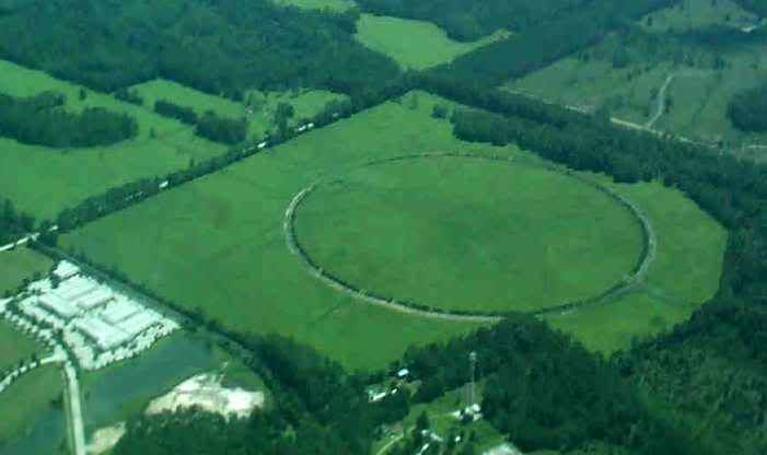 Francis Field, (World Golf Village) taken in 1940's shows heavy use of the mooring mast, a 30 ton monster that was "movable", thus the marks on the ground. The Airship approached like a plane, a large ground crew in a "V" shape took up the lines and ran up each leg of the "V". The Mast was positioned to come in and link in the middle or between the two top parts of the line men. The ship was moored to the center of the circle and weighted to stay level. The mast allowed it to pivot, so it was ALWAYS facing the wind. Thus the circle.