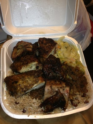 Island Tropics Caribbean - they usually serve 3 different size meals. The medium and large sizes include enough food to feed a family of 6,000.