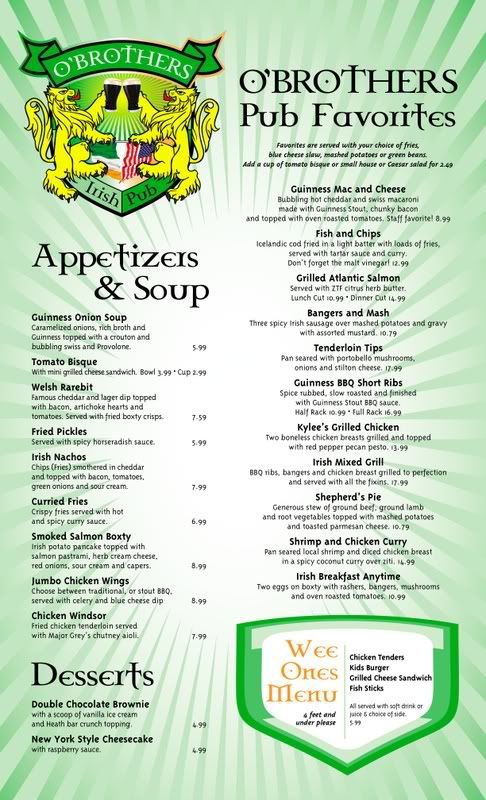 It's a rip, especially for a place that's supposed to be a"pub". Even the Brick, which is overpriced in its own right, charges $1 less for burgers, the beers are at least $1 cheaper, and most of the apps are cheaper. And they have better food. I really think O'Brothers is going to have to lower their prices if they want to be successful, long-term.