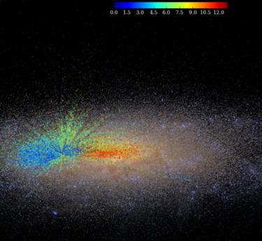 All the stars in the map are red giants - a very good place to start, Dr Ness explained, when peering across half a galaxy. "These are an extremely valuable star to get ages for, because they are very bright and we see them at very large distances."