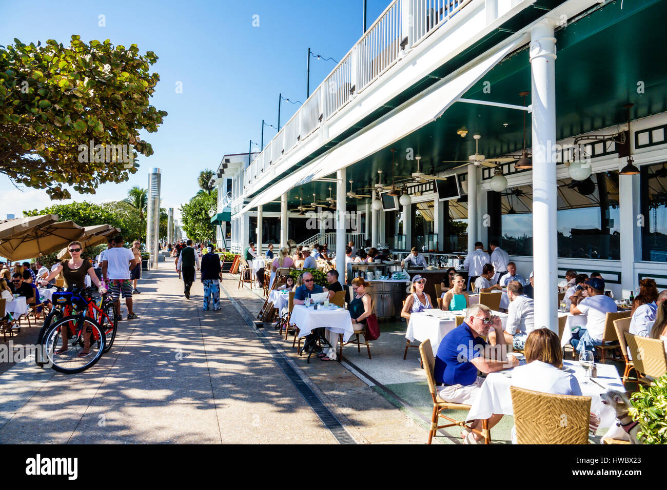 It is setback a bit further from the river than is ideal, but the pool and "pool court" are located to the northwest of the restaurant. If the restaurant was pushed closer to the river, it would block views from those two spots. Also, lot of restaurant operators do not want cyclists, joggers, walkers, and the general public immediately next to their patrons. If you are having a wedding reception or private party on the upper floor, the last thing you want is loud people on the Riverwalk spying on your event or creating noise. If you are trying to have a romantic dinner, you don't want a family with young kids right next to you on the Riverwalk. It does great business, but it's a problem for the Smith and Wollensky at South Pointe Park in Miami Beach, for instance.
