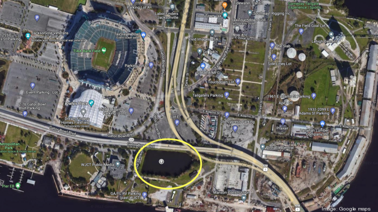 Developer A R Polar Jacksonville LLC, which owns a 20-acre property nearby, is seeking to purchase a 5-acre city-owned retention pond. The retention pond parcel is part of a 14.38-acre property that the city owns located between Gator Bowl Boulevard and the St. Johns River.