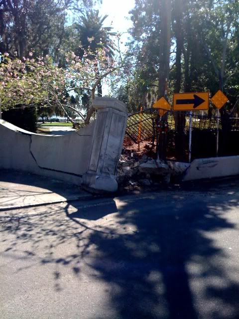 Further, the deadly steel and concrete corner post at this location should now be rebuilt to modern collision standards. Foam Core break-away post design, and light PVC fence pannels on each side would match the original, but not be lethal in a car hits wall collision.