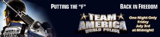 Our midnight movie this week is Team America - World Police, which should need no introduction.  However, it's a prototypical Hollywood action film, made with marionettes by the creators of South Park.