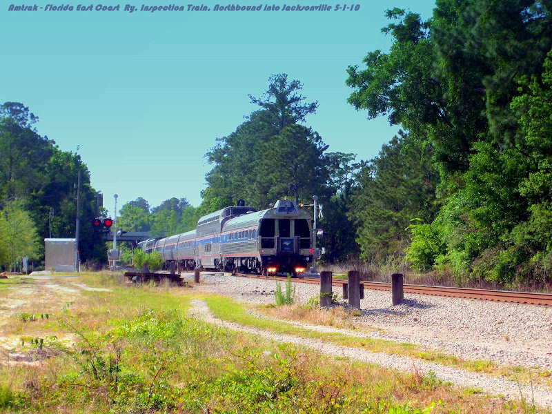 Here comes Amtrak, rolling down the Flagler System or Florida East Coast Railway, from Jacksonville Union Terminal, past the old Florida East Coast SOUTH JACKSONVILLE train station which was located at Landon and the FEC in San Marco.  This is the first of two inspection trains scheduled to run the length of the FEC route.