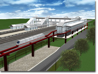 As the guy that first proposed the Skyway to the West Side of the Railroad at Atlantic Boulevard my concept was/is very much a intermodal link as good as Rosa Parks.  The station would have COMMUTER RAIL, COMMUNITY BUS, BRT, BUS, and SKYWAY service. My original concept calls for the station to have an elevated Skyway line that drops down (such as the photo Ennis posted) to ground level prior to entering the Atlantic Boulevard Terminus. This is something that might have to change if Jackson Square ever gets off the ground, as they would be the next logical Skyway Station, because in spite of their hype, there is no way in hell anyone is going to stop a commuter train twice within 1/4 mile. If they have the $$ then a further extension south might be an ideal PPP for JTA.
