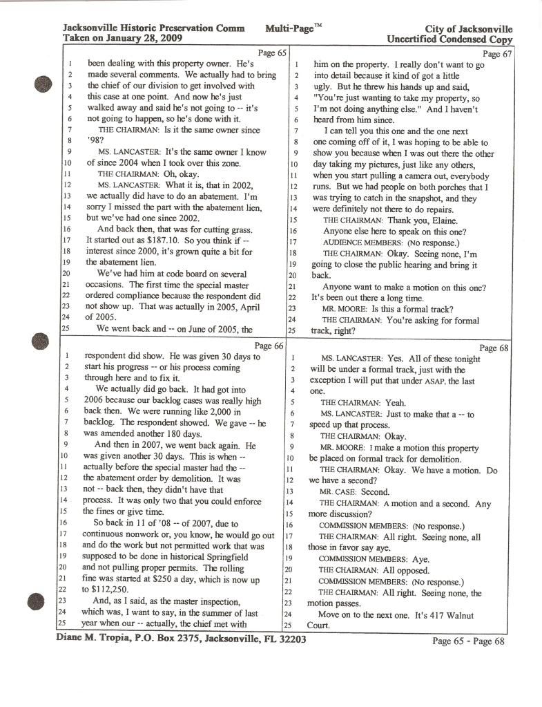 This is exactly what's failing and what's chipping away at our historic district. How in the world can anyone be expected to pay rolling fines like that? It's also wrong that code enforcement deems a place unsafe because of no electricity, over grown yards, or even broken windows. If the city properly boarded these places, and NOT demo because of fines and NOT place them on the unsafe list because of minor issues...we would not have lost as many as we have.
